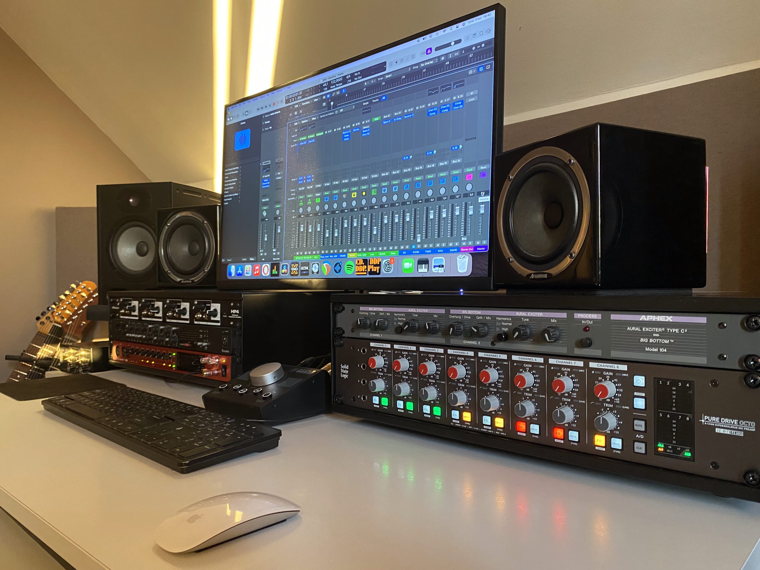 Studio wyposażone jest w 26 torów wejściowych oraz 5 niezależnych wyjść odsłuchowych.